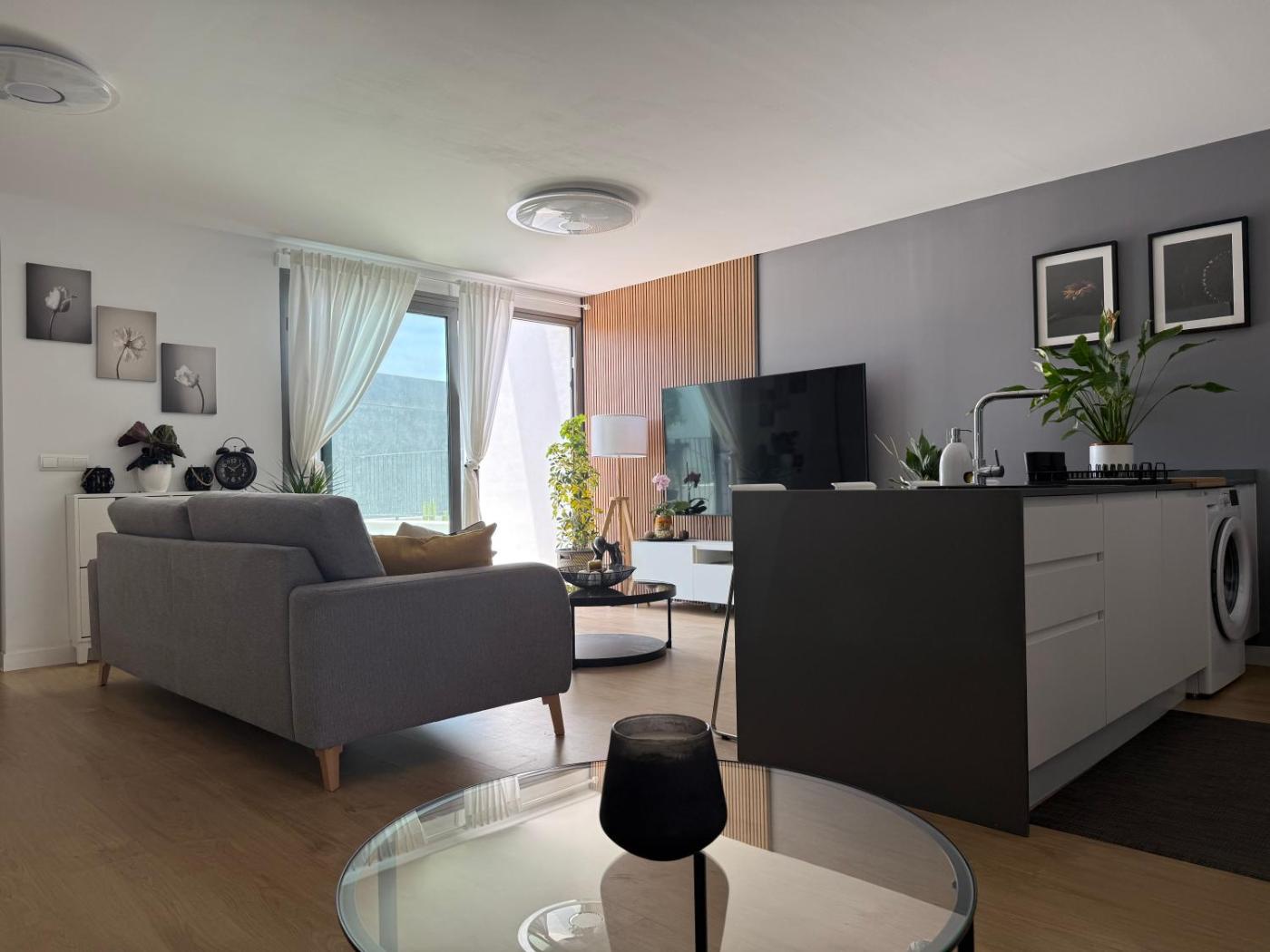 The spacious apartment with a terrace and garden views has 2 bedrooms, a living room, a flat-screen TV, an equipped kitchen, and 2 bathrooms with a bath. For added privacy, the accommodation has a private entrance and soundproofing.