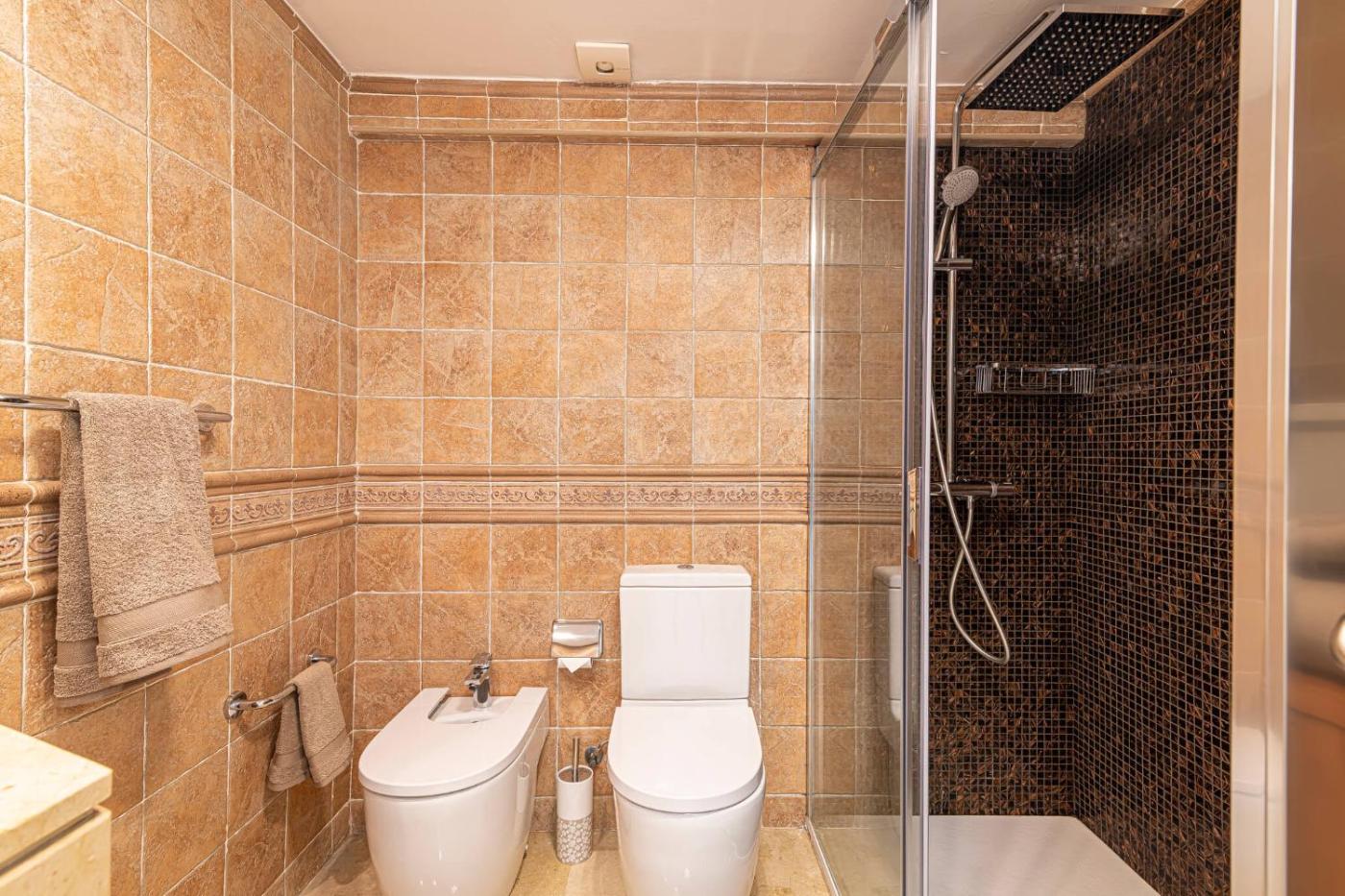 Two-Bedroom Apartment. This spacious apartment features 1 living room, 2 separate bedrooms and 2 bathrooms with a shower and a bidet. Meals can be prepared in the kitchen, which has a stovetop, a refrigerator, kitchenware and an oven. Boasting a terrace with sea views, this apartment also features a washing machine and a flat-screen TV. The unit has 2 beds.
