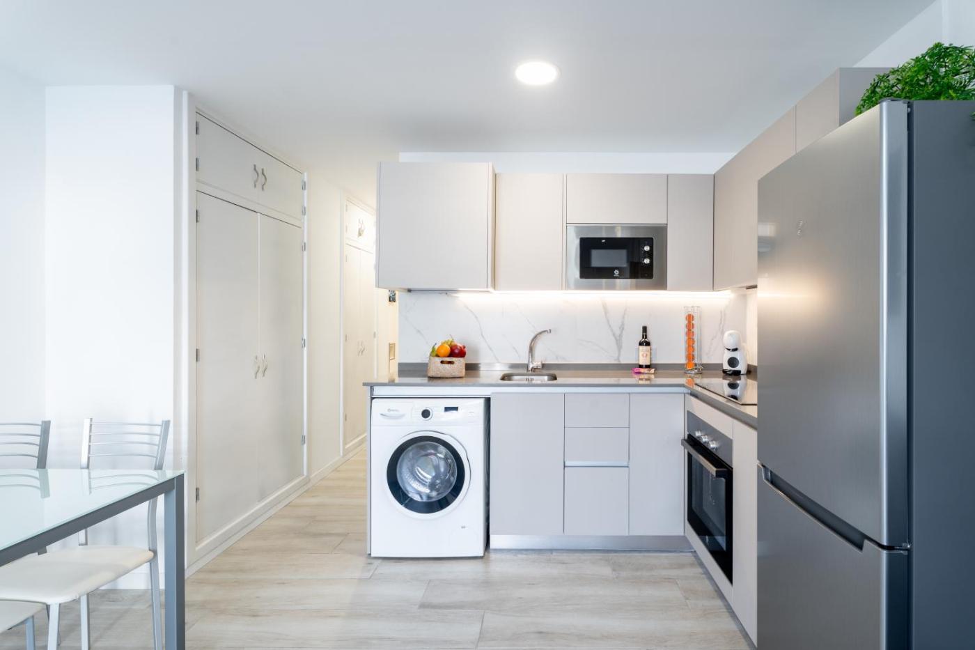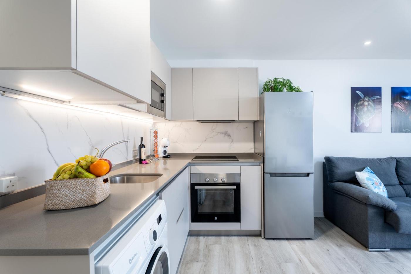 One-Bedroom Apartment. The pool with a view is a top feature of this apartment. This apartment comes with 1 living room, 1 separate bedroom and 1 bathroom with a shower and a hairdryer. The well-equipped kitchen features a refrigerator, an oven and a microwave. This apartment has a washing machine, a tea and coffee maker, a flat-screen TV and a terrace. The unit has 1 bed.