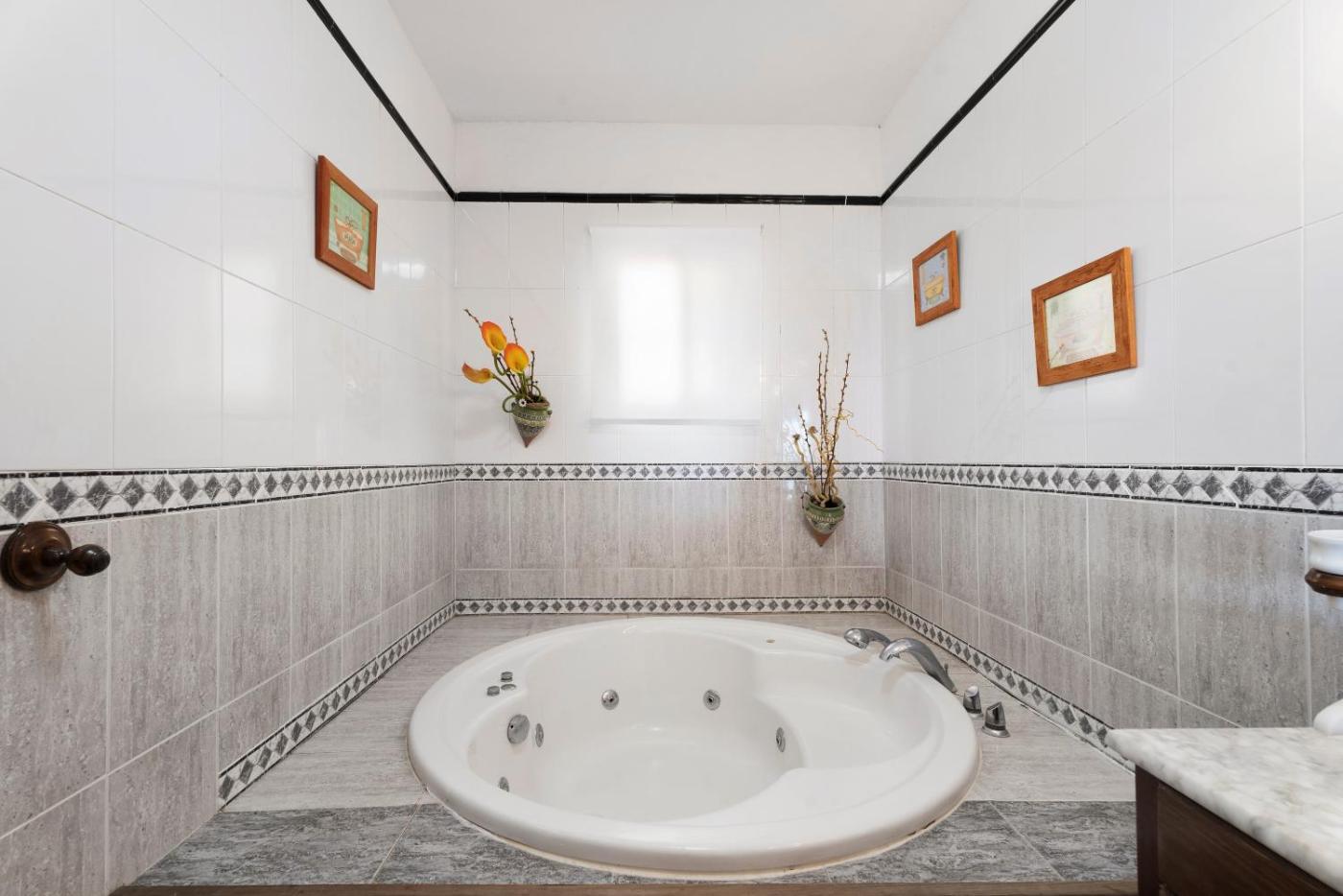 Three-Bedroom House. Guests will have a special experience as this holiday home offers a hot tub and a fireplace. Featuring a private entrance, this spacious holiday home also consists of 3 separate bedrooms and 2 bathrooms with a bath and a shower. The fully equipped kitchen features a dishwasher, kitchenware, an oven and a microwave. The air-conditioned holiday home provides a TV with streaming services, a washing machine, a coffee machine, a barbecue as well as sea views. The unit offers 5 beds.