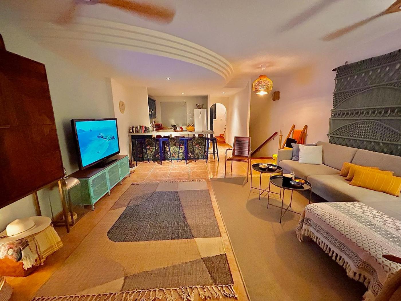 Two-Bedroom Townhouse. This holiday homes special feature is the pool with a view. This spacious holiday home comprises 1 living room, 2 separate bedrooms and 2 bathrooms with a bath and free toiletries. In the fully equipped kitchen, guests will find a stovetop, a refrigerator, a dishwasher and kitchenware. Featuring a terrace with sea views, this holiday home also provides a washing machine and a flat-screen TV with streaming services. The unit offers 3 beds.