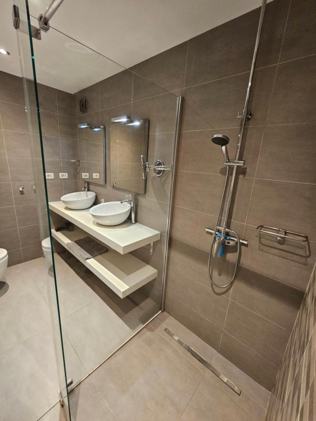 Two-Bedroom Apartment. Boasting a private entrance, this spacious apartment also includes 2 bedrooms, a seating area and 2 bathrooms with a shower and a hairdryer. In the well-fitted kitchen, guests will find a refrigerator, kitchenware, an oven and a toaster. The air-conditioned apartment offers a TV with satellite channels, a washing machine, a tea and coffee maker, a dining area as well as sea views. The unit has 4 beds.