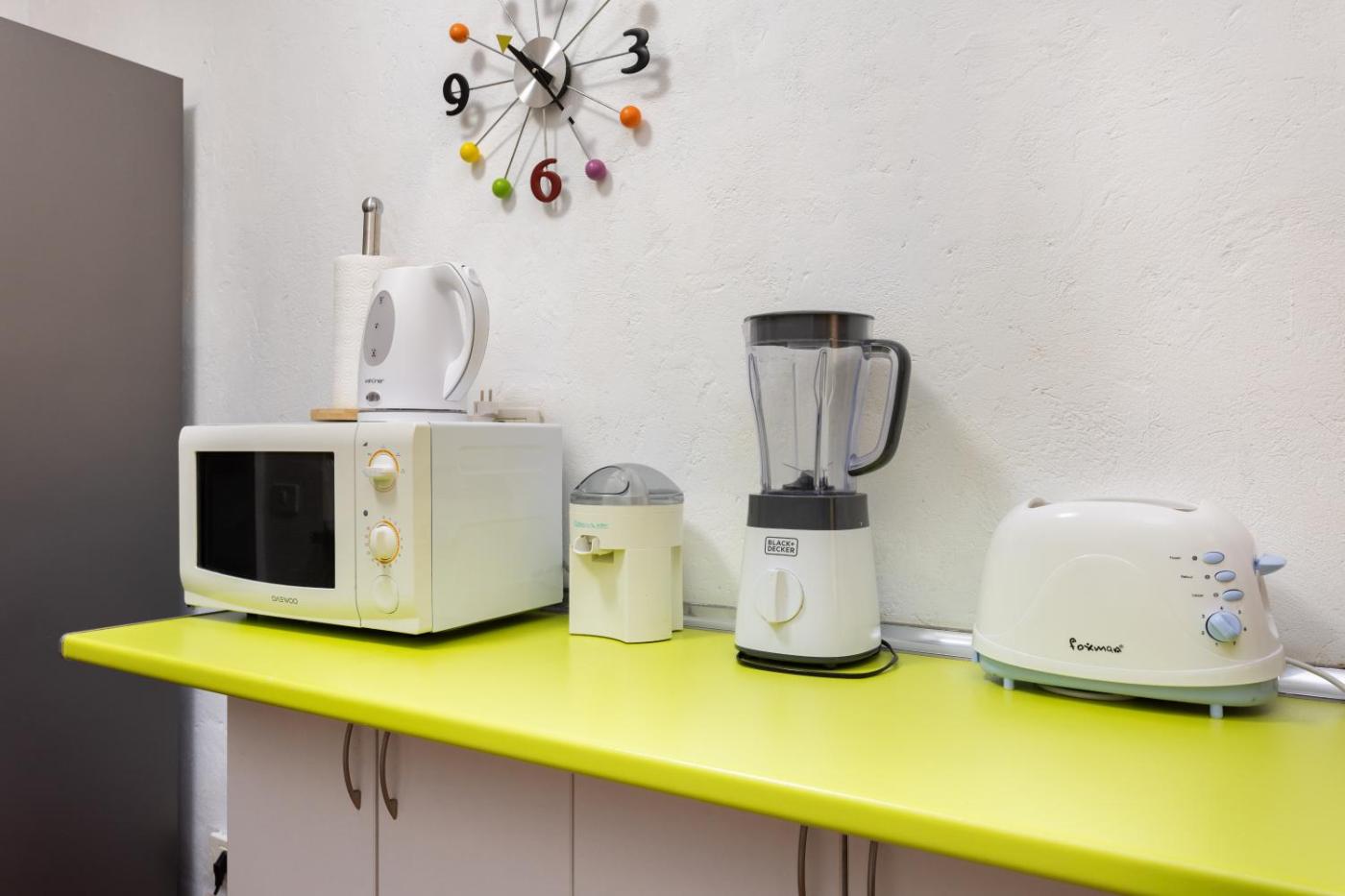 Three-Bedroom Apartment. This spacious apartment comprises 1 living room, 3 separate bedrooms and 2 bathrooms with a bath and a shower. In the well-fitted kitchen, guests will find a stovetop, a refrigerator, kitchenware and an oven. The apartment provides a washing machine, a coffee machine, a seating area, a dining area and a flat-screen TV. The unit offers 3 beds.