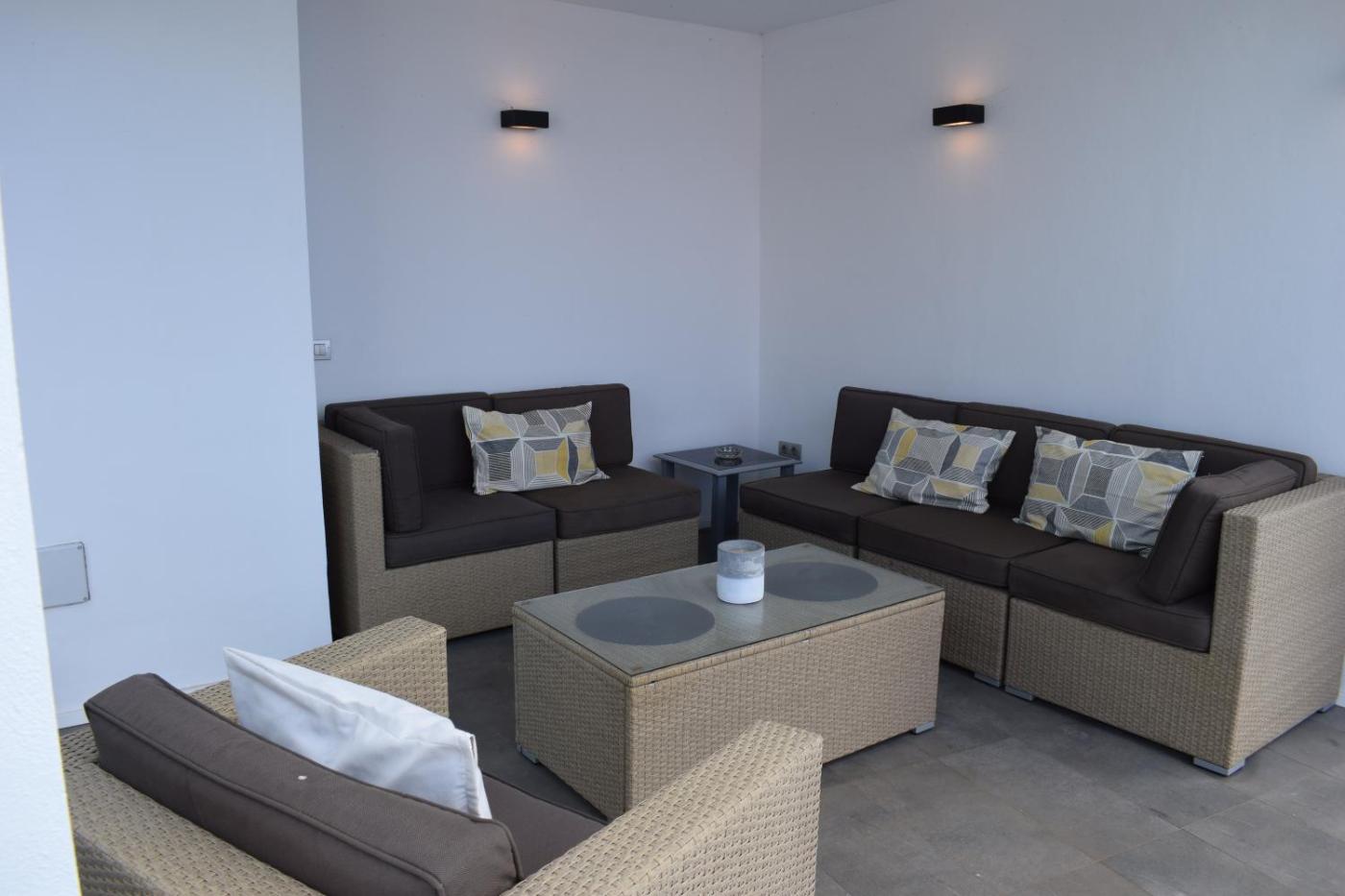 The spacious villa with a terrace and sea views has 2 bedrooms, 2 living rooms, a flat-screen TV, an equipped kitchen with a dishwasher and an oven, and 2 bathrooms with a hot tub. The unit is soundproofed and is comprised of a parquet floors as well as a fireplace. The property has an outdoor dining area.