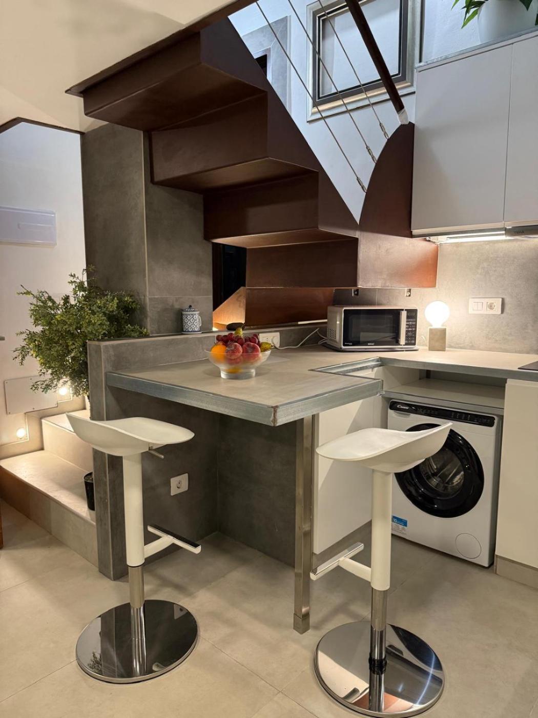 One-Bedroom Loft Apartment with One Queen Bed. The private pool is the special feature of this apartment. This apartment comprises 1 living room, 1 separate bedroom and 1 bathroom with a shower and free toiletries. Meals can be prepared in the well-fitted kitchen, which comes with a stovetop, a refrigerator, kitchenware and a microwave. The air-conditioned apartment provides a flat-screen TV with cable channels, a washing machine, a minibar, a tea and coffee maker as well as ancourtyard view. The unit offers 2 beds.