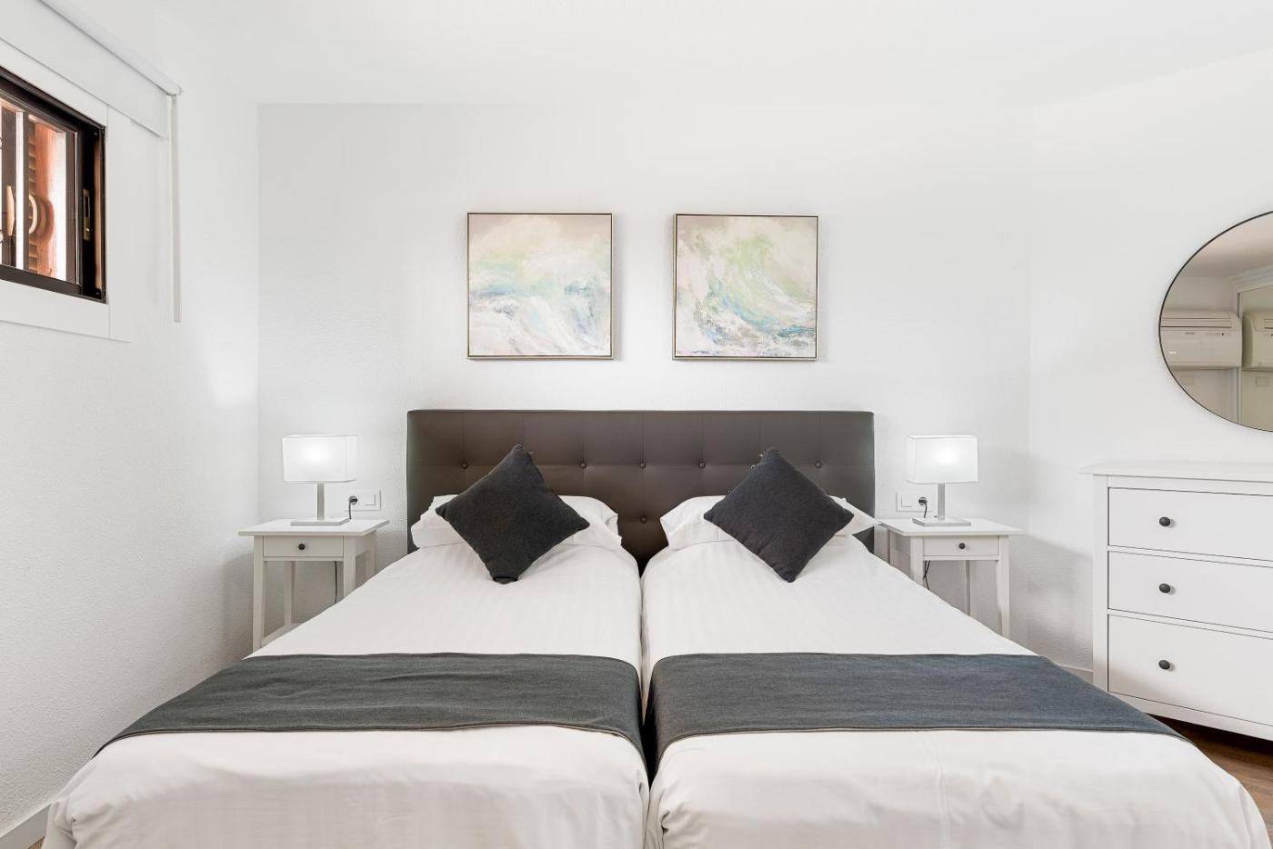 Two-Bedroom Apartment. This modern apartment features a double bedroom, a twin bedroom and a private balcony. There is a lounge with a sofa, flat-screen satellite TV and DVD player. The kitchenette includes a fridge, microwave and kettle. Apartments offer views of the pool, gardens or surrounding mountains. (please inform about your preference -subject to availability- in the comment box). ;