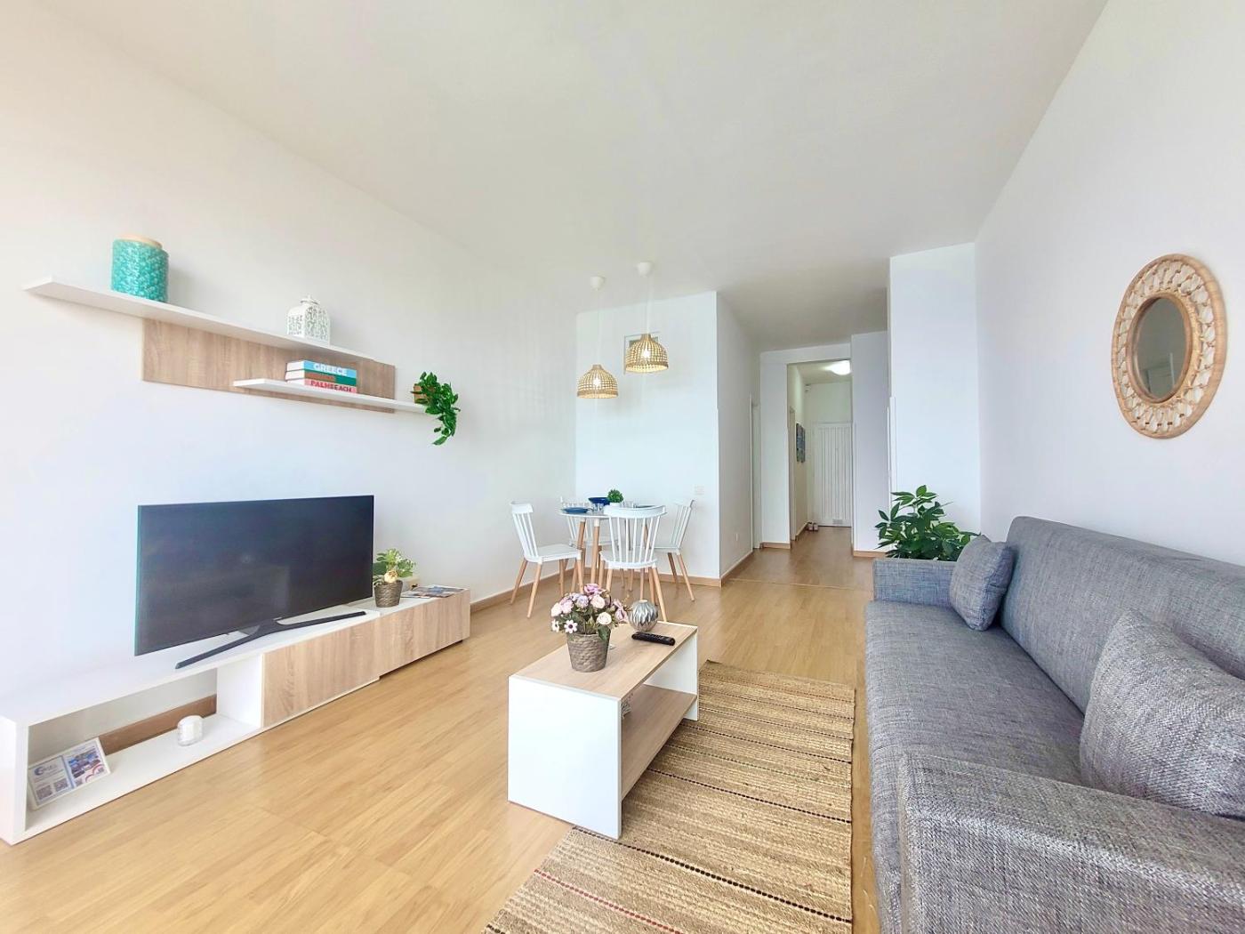 One-Bedroom Apartment. This apartment comes with 1 living room, 1 separate bedroom and 1 bathroom with a shower and a hairdryer. The well-equipped kitchen has a stovetop, a refrigerator, a microwave and a tea and coffee maker. Boasting a terrace with sea views, this apartment also features a washing machine and a flat-screen TV. The unit has 2 beds.