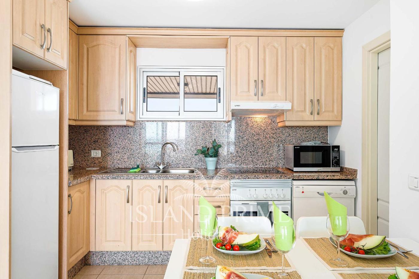 Two-Bedroom Apartment. Featuring a private entrance, this spacious apartment also is comprised of 1 living room, 2 separate bedrooms and 1 bathroom with a bath. Meals can be prepared in the well-fitted kitchen, which is fitted with a stovetop, a refrigerator, a dishwasher and kitchenware. The unit features a washing machine, sea views, a terrace and winechampagne is featured for guests. The unit offers 2 beds.