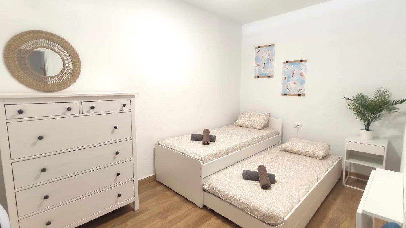 Three-Bedroom Apartment. This apartments special feature is the private pool. This spacious apartment consists of 1 living room, 3 separate bedrooms and 2 bathrooms with a bath and free toiletries. The fully equipped kitchen features a stovetop, a refrigerator, a dishwasher and kitchenware. Featuring a terrace with sea views, this apartment also provides a washing machine and a flat-screen TV. The unit offers 4 beds.